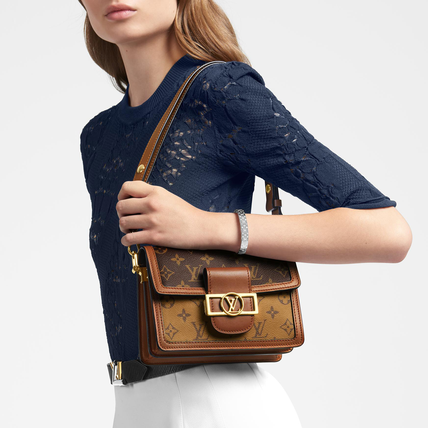 2019春夏に向けてニコラ・ジェスキエールが発表した新たなマストハブバッグ「ドーフィーヌ MINI」。モノグラム・キャンバスとモノグラム・リバース キャンバスを組み合わせ、なめらかなカーフレザーでトリミングを施した、愛らしいコンパクトモデルです。光を放つ ロックと機能的なレザーのストラップがアイコニックなアイテムにモダンなひねりを加えます。デイタイムからイブニングシーンまで活躍するサイズも魅力です。